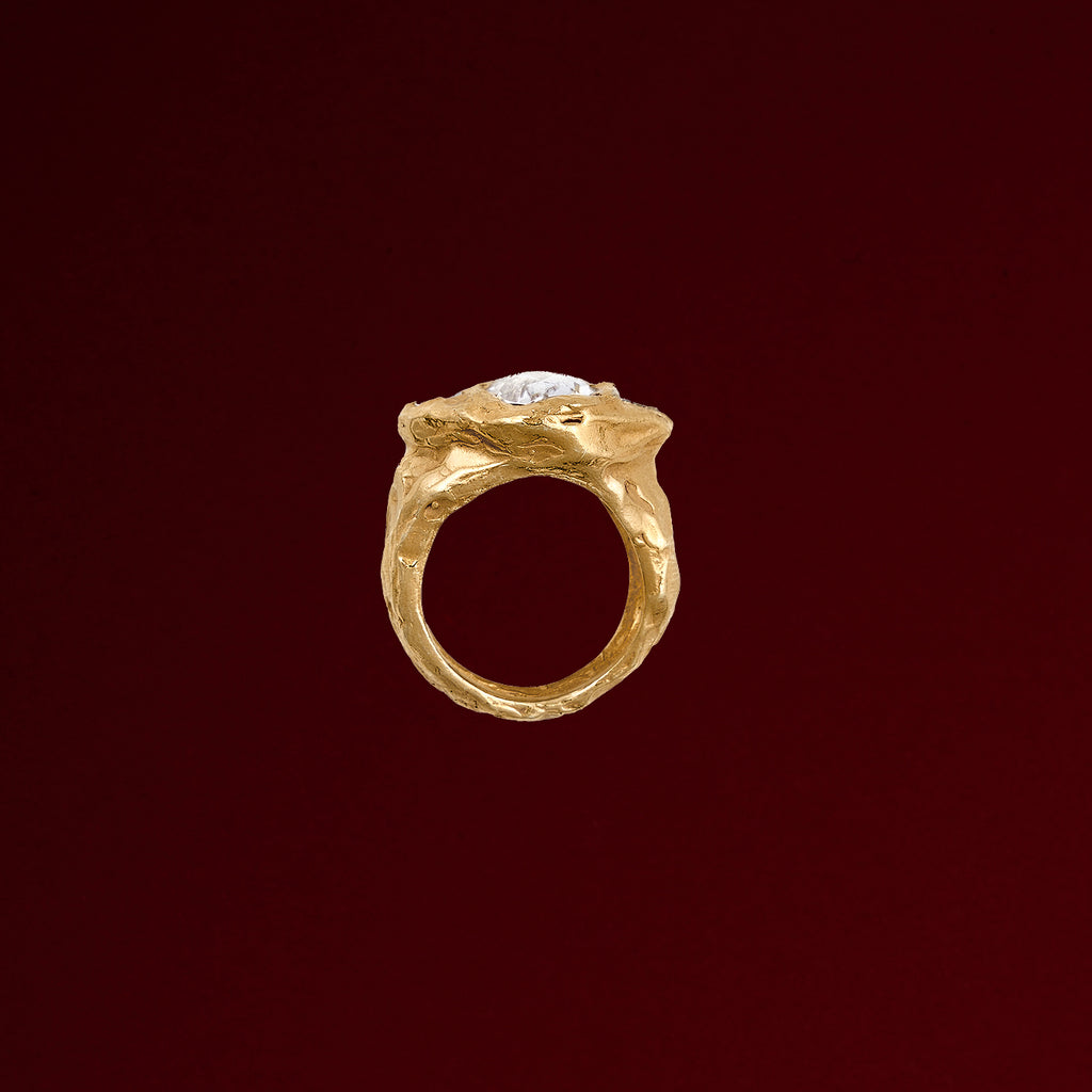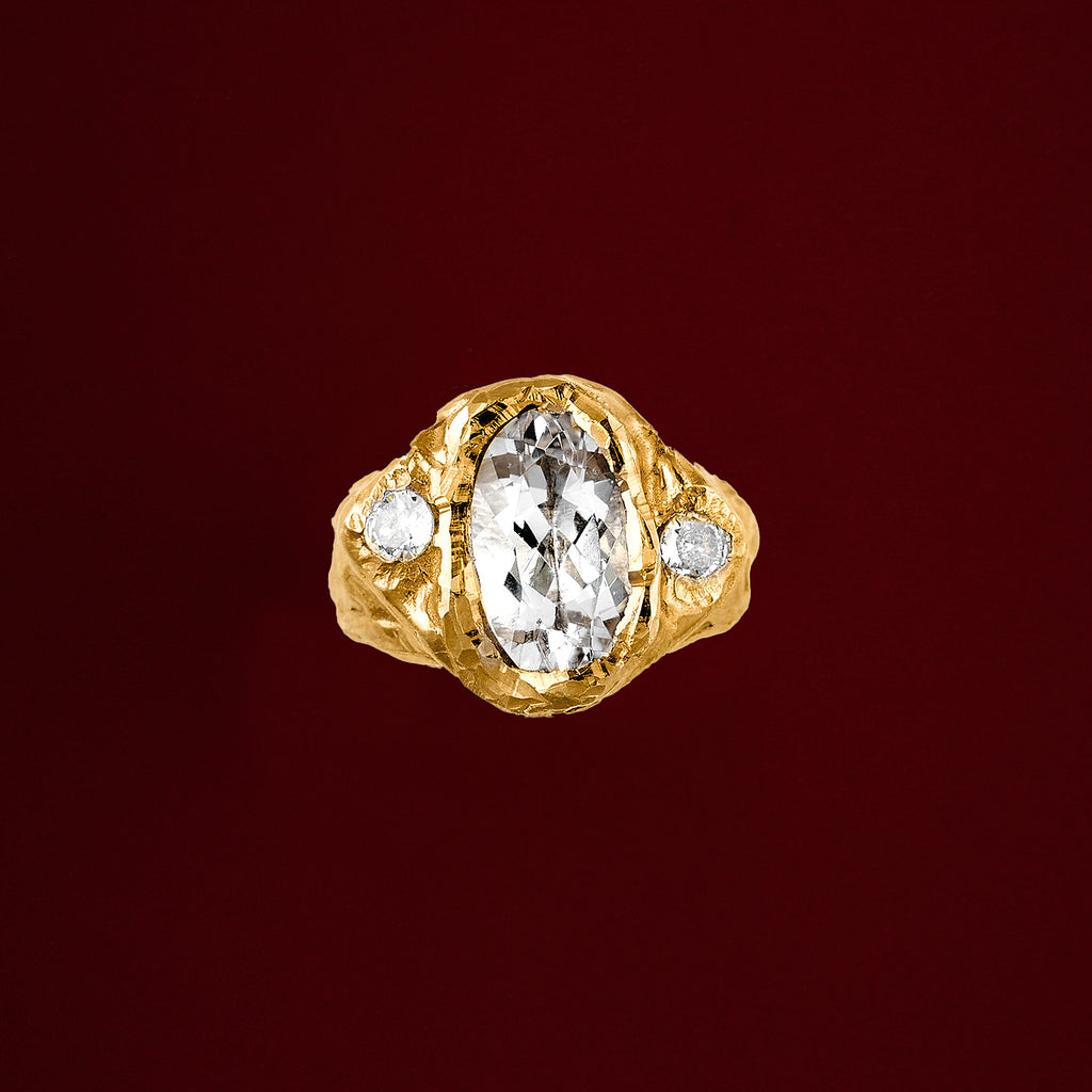 O Anel Sanrin representa a tríplice do tempo através de suas três pedras: passado, presente e futuro. No centro, como o mais importante, está o presente. O cristal natural em lapidação oval simboliza o eterno — a eternidade que se revela no instante observado.