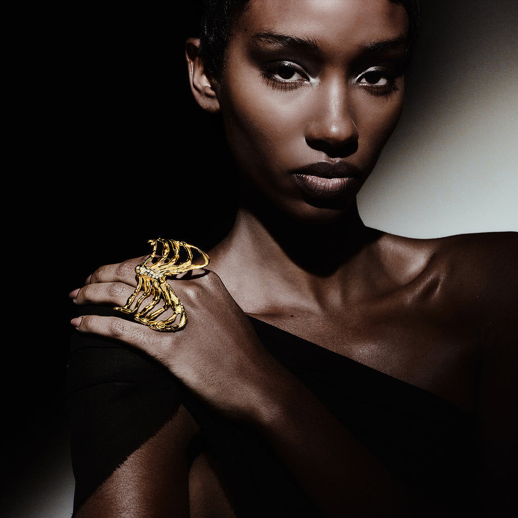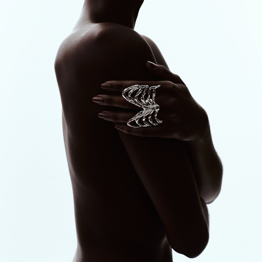 Na coleção Travessia, a família Eidos simboliza a costela em uma forma escultural sugestiva. Arquétipo da origem e do escudo vital, a costela, desde a mitologia, representa força e proteção. É também passagem kundalini, ponte entre o material e o espiritual.