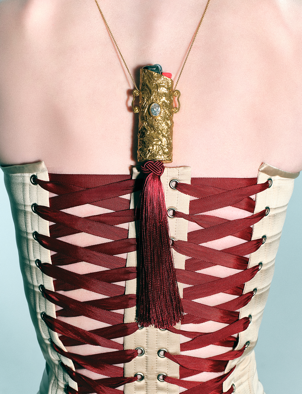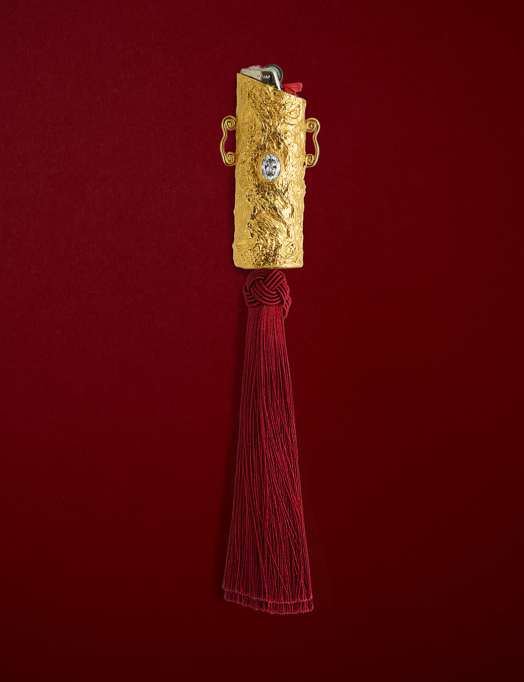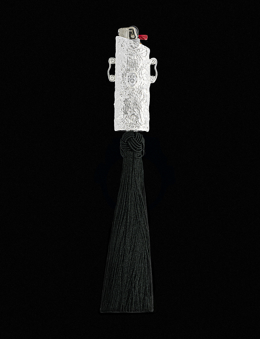 Na base, o tassel adiciona movimento e contraste, trazendo leveza à composição e criando uma tensão entre o bruto e o delicado, o estático e o fluido.